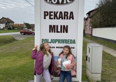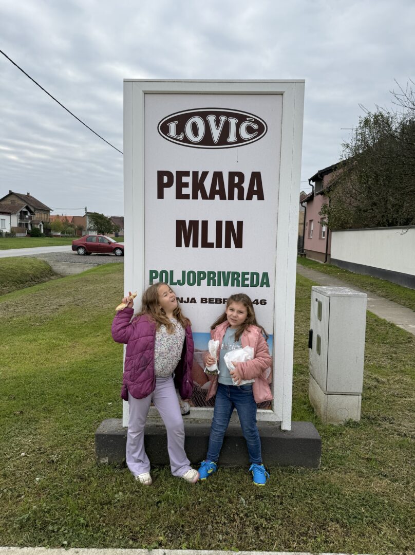 Svakoga listopada izražavamo zahvalnost za sve plodove koje ubiremo žetvom i berbom i tijekom tih jesenskih dana obilježavamo Dane kruha. Učenice drugog razreda PŠ Gornja Bebrina tim su povodom u četvrtak 16. listopada posjetile pekarnicu Lović. Kraćom šetnjom od naše škole zaputile smo se u dvorište obitelji Lović u kojemu se nalazi pekarnica i mlin. Na ulazu nas je srdačno dočekala gospođa Marina Lović koja nas je provela prostorijama u kojima nastaju najfinija i najmirišljavija peciva koja svakodnevno jedemo. Objasnila nam je proces izrade kruha i pokazala nam strojeve kojima se pri tome koriste. Osim kruha tu se peku i ostala peciva i keksići te smo vidjele veliki mikser, pećnicu u kojoj se može peći čak 200 štruca kruha te strojeve koji oblikuju kifle u njihov prepoznatljiv izgled. Našoj Magdaleni se najviše svidio veliki mikser za tijesto, a Marija, nakon što je vidjela velike kašete za dostavu peciva, odlučila je da bi najviše voljela prevoziti peciva i bila dostavljačica. Na kraju našega obilaska zahvalile smo gospođi Marini na druženju, a ona nas je velikodušno počastila ukusnim pecivima, burekom, pizzom, štrudlama i keksićima.