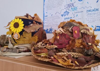 Ovog lijepog jesenskog sunčanog jutra, gotovo u cik zore, budnica jesenskih šešira odzvanjala je i inače bučnom i razigranom ruščičkom školom. Kukuruzovina, žirovi, šipak, kestenje, listopadno lišće,orasi, lješnjaci, bundevice manje, bundevice veće, čak i svjetlosni efekti našli su mjesto na glavama učenika petih razreda. Osim vješto ukrašenih šešira tu lijepu priču zaokružila je ni manje ni više nego dramska igra u Priči jesenskog šešira ispričana očima Šeširka, Šeširke, Šljemširka, Šeširićka i Šeširićke i