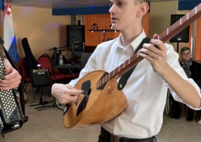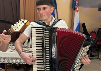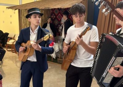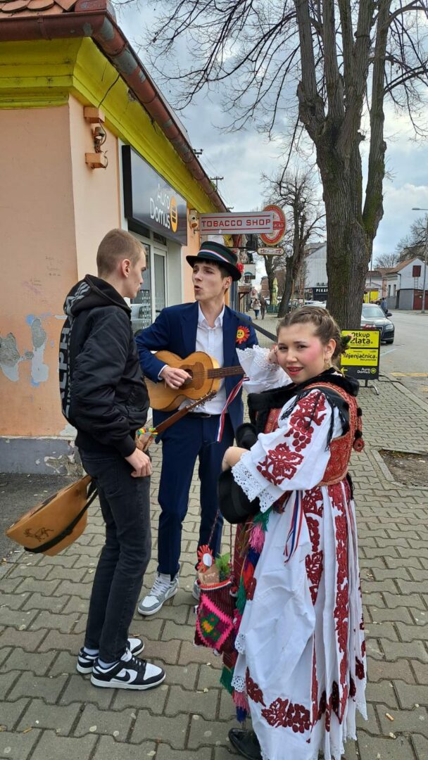 Dečki su svirali: Bruno Ž. 8.a basprim, Filip P. 8.a kontra, Mario P. 8.a harmoniku i Luka L. 8.b šargiju. Barbara L. 7.a i Petra Ž. 8.b obukle su se u snaše. Učenice 7.b: Marina B., Tena B., Paula R. i DoroteaU. bile su klaun, učiteljica, starac i Harry Potter.