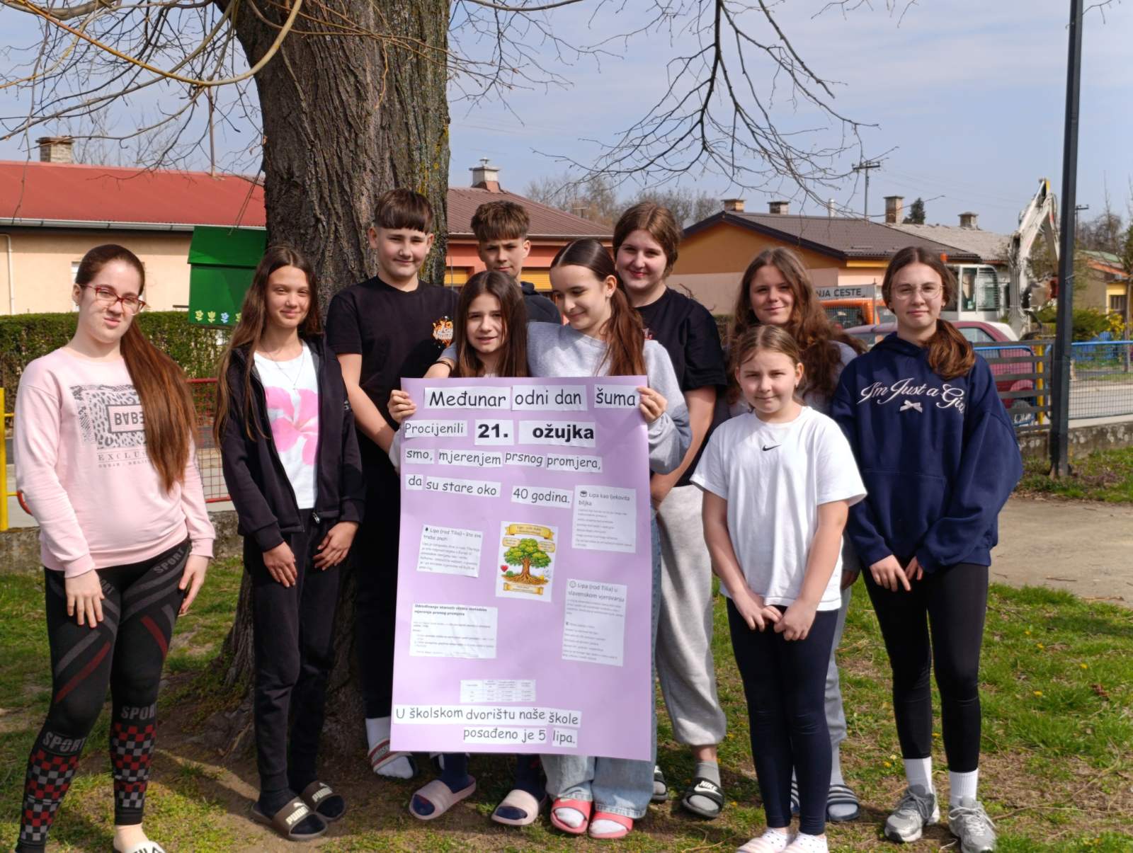 Praktičnim radom u školskom dvorištu primijenili su tehniku mjerenja prsnog opsega stabala, na temelju čega su procijenili da su naše lipe stare oko 40 godina. Svoja zapažanja i zaključke učenici su zabilježili te ih sažeto prikazali na plakatu.
