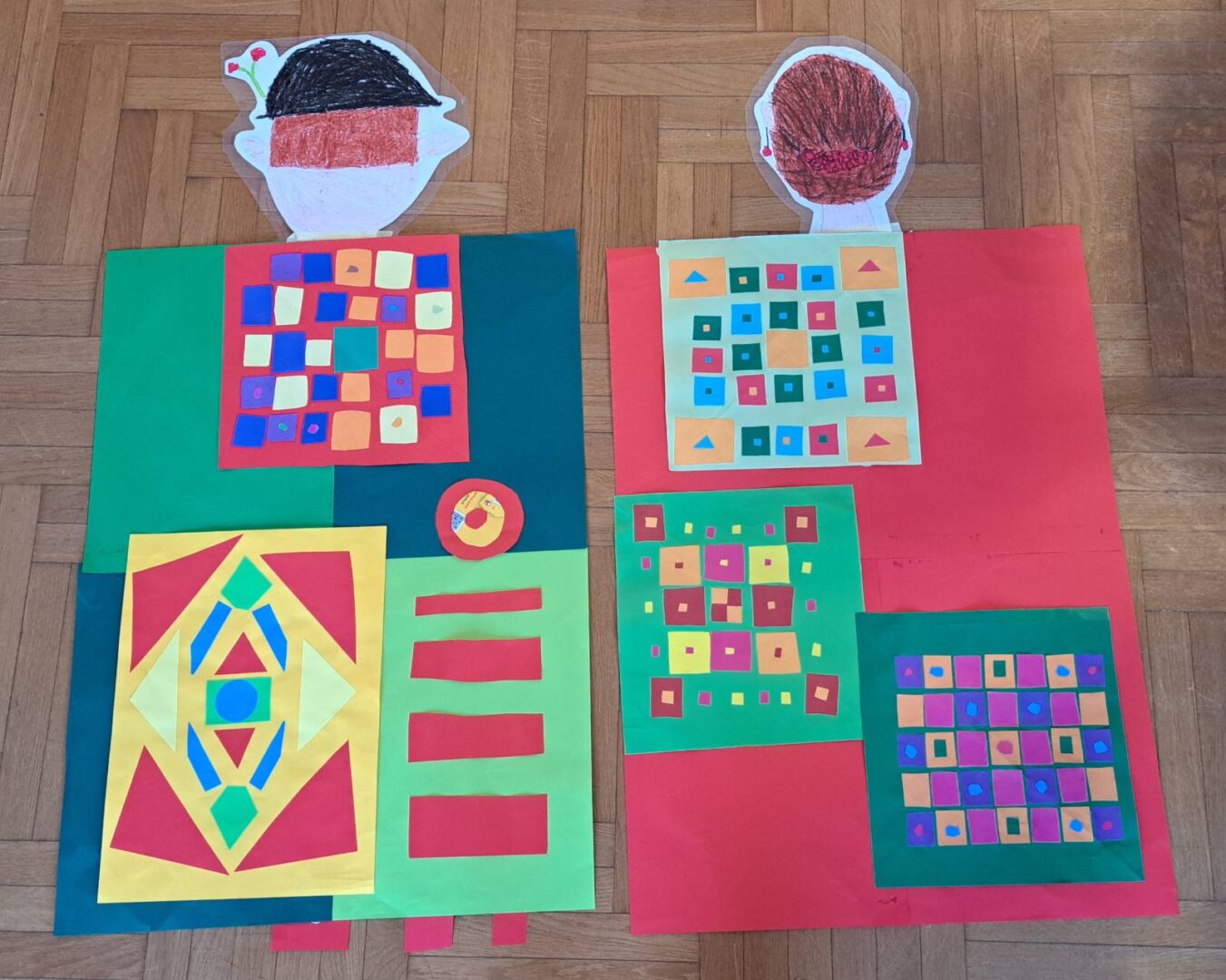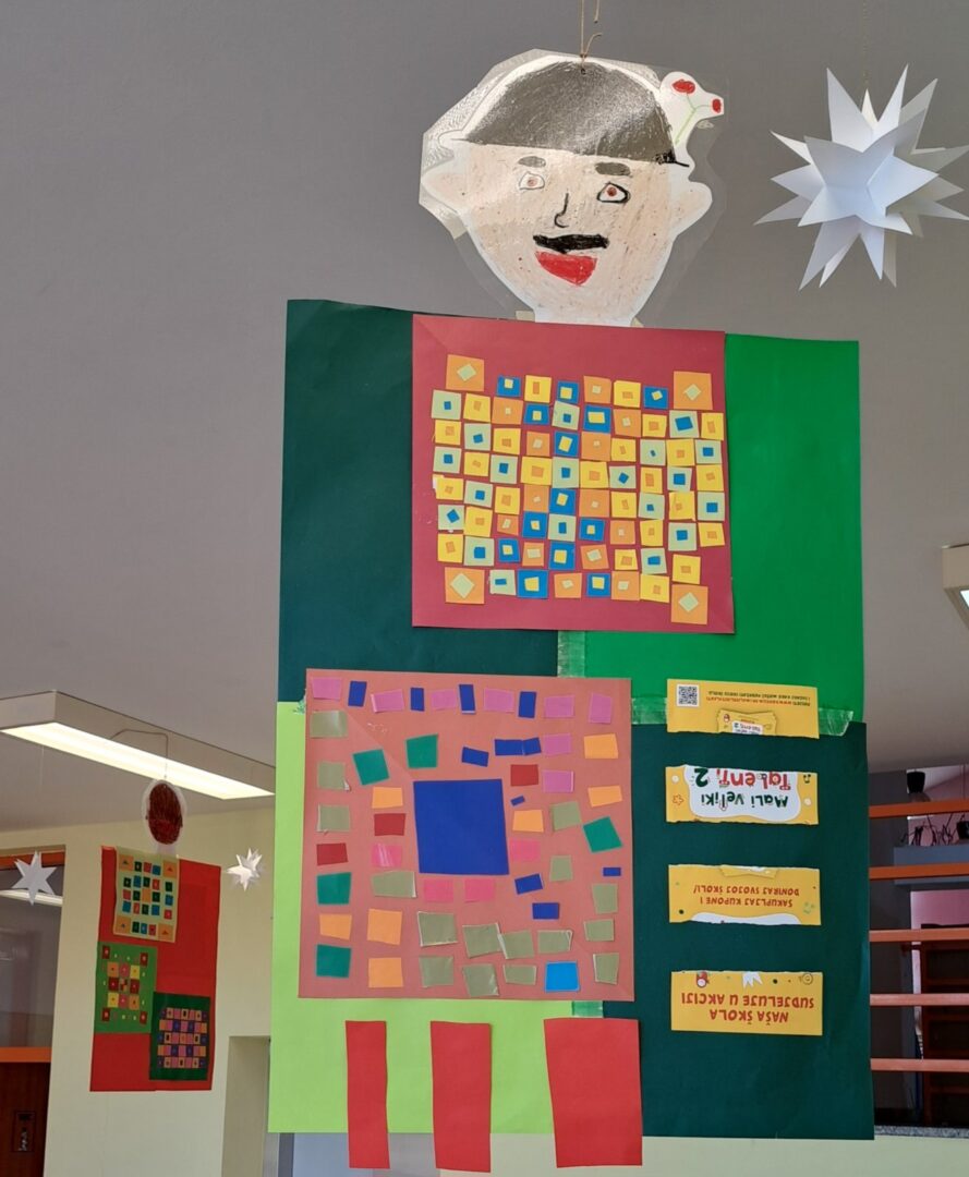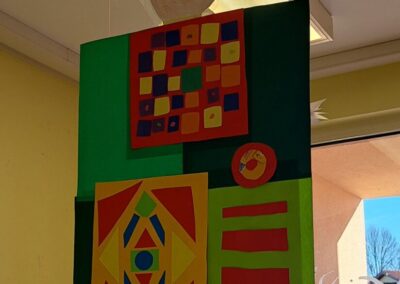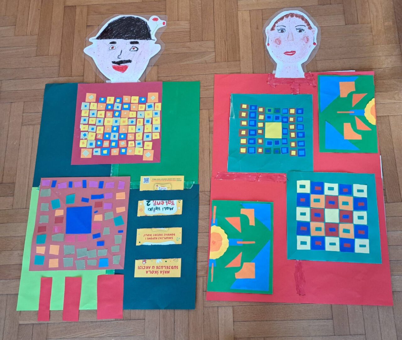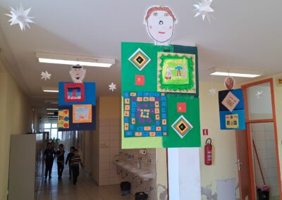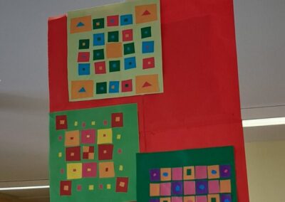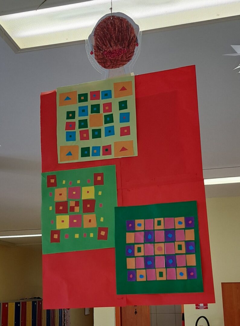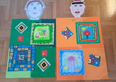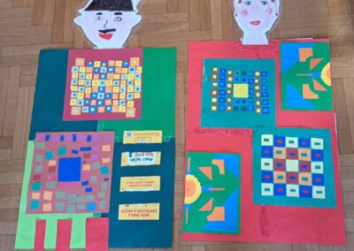 Promatrajući ponjave složili su svoj geometriski motiv. Likovnjaci su složili većinom njihove radove, ali i radove 6 i 8 razreda u kolaž kao halje.