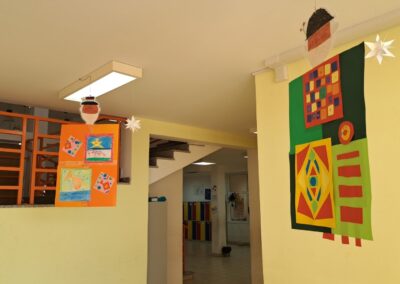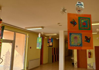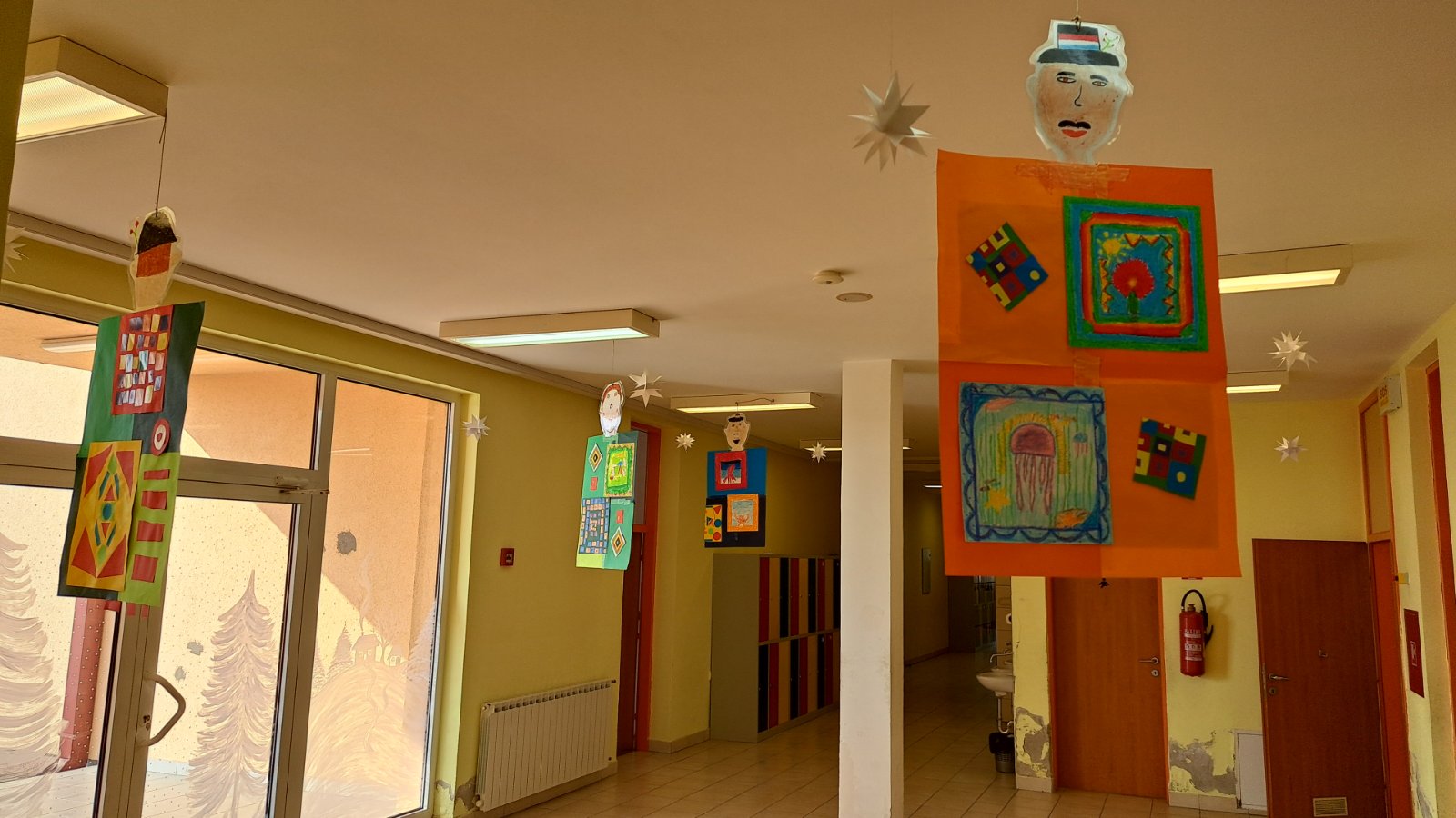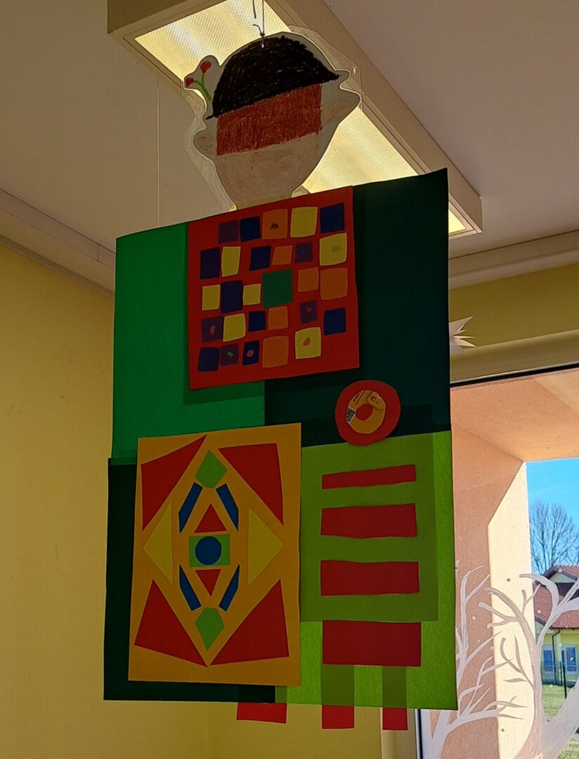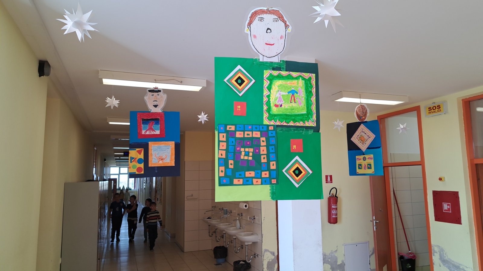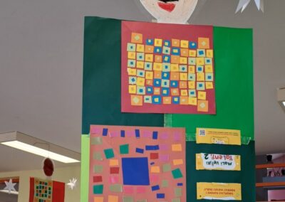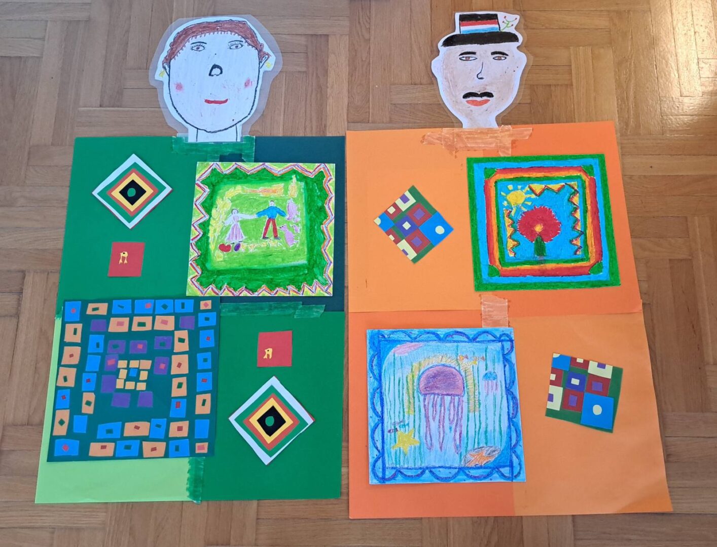 Promatrajući ponjave složili su svoj geometriski motiv. Likovnjaci su složili većinom njihove radove, ali i radove 6 i 8 razreda u kolaž kao halje.
