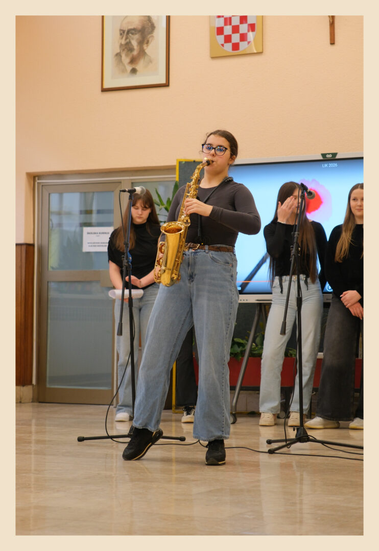 Svečano otvorenje upotpunjeno je prigodnim umjetničkim programom. Na saksofonu je nastupila Asja Kaldžo, dok su učenice 8. e razreda izvele recitaciju pjesme „Cvrčak“ autora Vladimira Nazora. Za umjetnički dio programa bile su zadužene Dubravka Pletikapić i Mirta Grubišić.