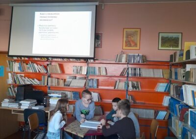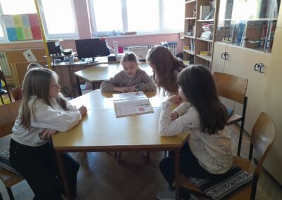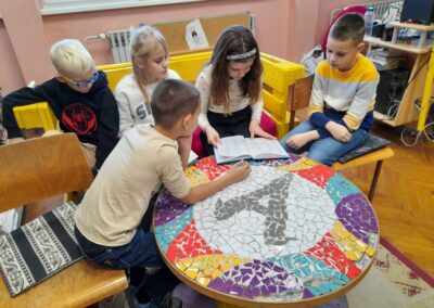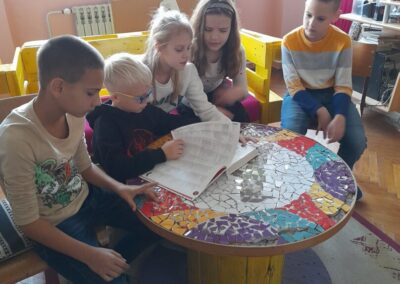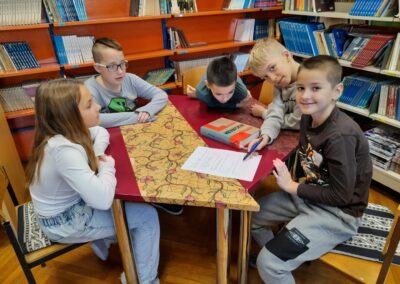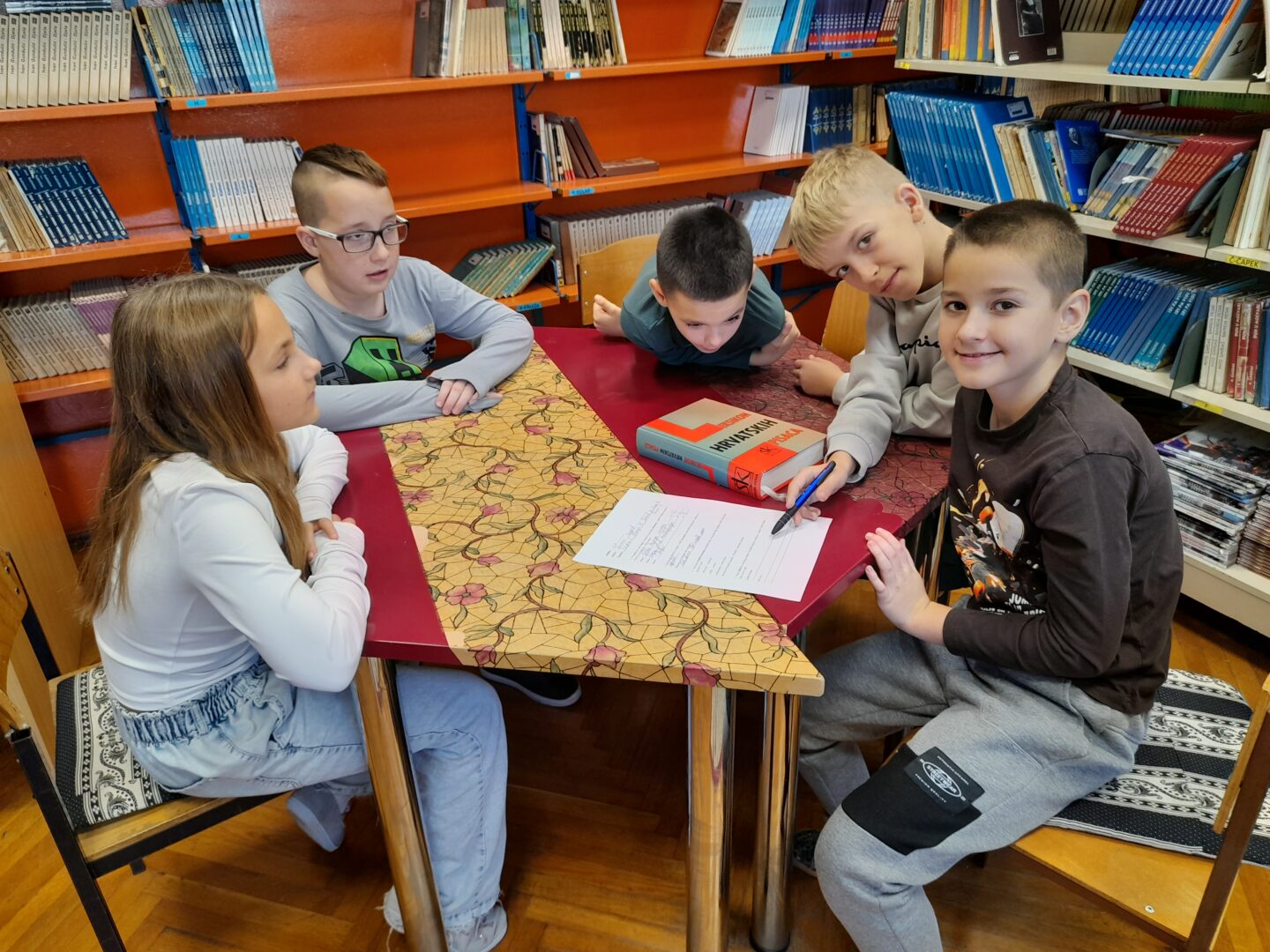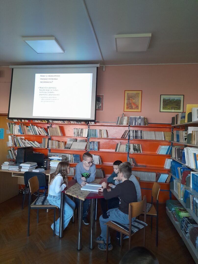 Knjižničarka gospođa Dragana Jušćak stručno nam je objasnila sve navedene pojmove, a na samom kraju rješavali smo listić u skupinama. U navedenim literaturama tražili smo određene pojmove. Bilo nam je zabavno.